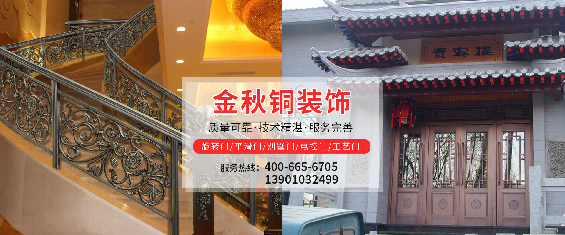 北京金秋銅裝飾材料有限公司是專業(yè)生產銅裝飾材料及設計、開發(fā)、制造、施工、售后服務為一體的大型綜合企業(yè)。可承接建筑銅裝飾工程及五星級酒店、別墅、博物館、樓樘管所等高檔銅裝飾項目;生產各種規(guī)格的旋轉門、平滑門、別墅門、電控門、工藝門、旋轉護欄、屋頂銅飾防水瓦、浮雕壁畫......